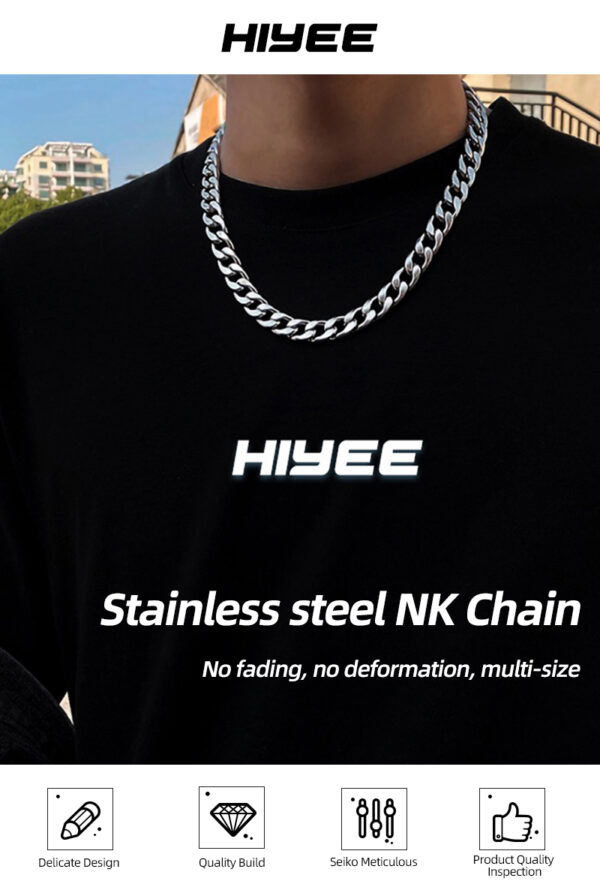 Η πλούσια ιριδίζουσα αλυσίδα είναι κατασκευασμένη από συμπαγή ανοξείδωτο ατσάλι. Προσφέροντας μια πιο στρογγυλή και παχύτερη αλυσίδα, το στυλ αλυσίδας Miami Cuban. Φαρδιά Πάχους 9 mm και μήκος 60 cm.