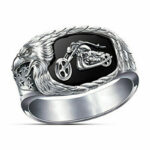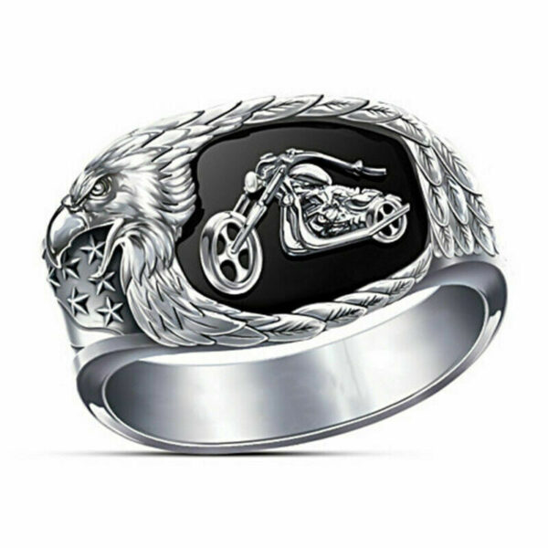 Μοντέρνο ανδρικό δαχτυλίδι ιδανικό για όλους εσάς τους Easy Rider, κατασκευασμένο από ανοξείδωτο ατσάλι έτσι ώστε να μένει αμετάβλητο στο χρόνο. Διακοσμημένο με μαύρο σμάλτο.