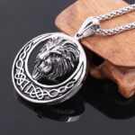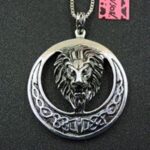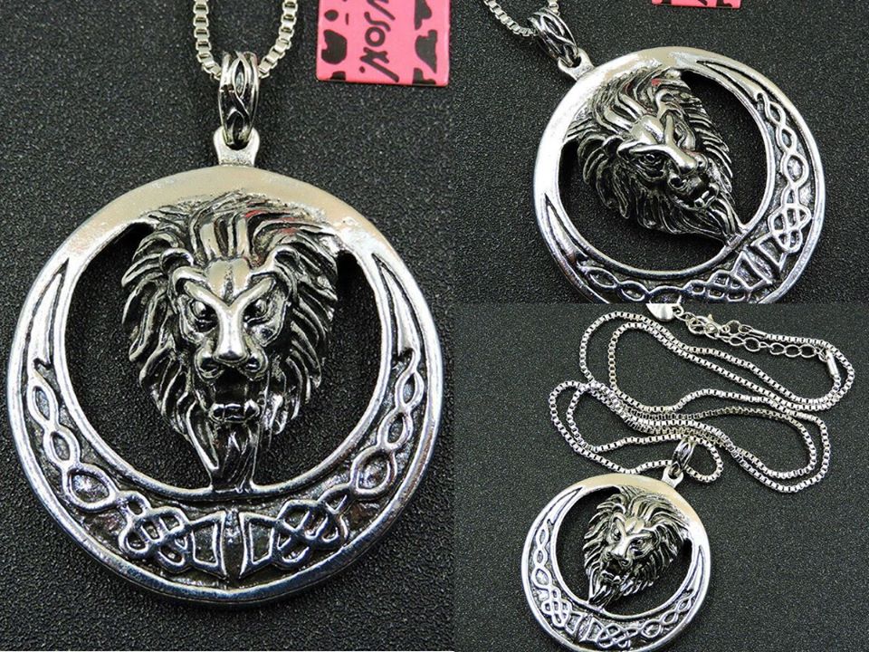 Ανδρικό μενταγιόν κατασκευασμένο από ατσάλι με μοτίφ το κεφάλι του λέοντα. Συνοδεύεται από αλυσίδα 70 εκατοστών + 5 εκατοστά το αλυσιδάκι προέκτασης στο πίσω μέρος. Σχεδιασμένο από την Betsey Johnson. Το μενταγιόν έχει διαστάσεις 4,5 X 4,5 εκατοστά.