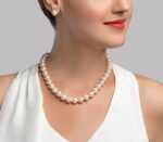 Κολιέ από λευκές στρογγυλές μεγάλες πέρλες 12mm South Sea Shell. Δεμένες στο χέρι με κόμπους μεταξύ τους σε διπλό μεταξωτό νήμα. Επίχρυσο κούμπωμα 14 καράτια διακοσμημένο με λευκά ζαφείρια (Lab creation) σε κοπή round. Μήκους 55- 60 εκατοστών. Ένα διαχρονικό κόσμημα για κάθε περίσταση που θα απογειώσει την εμφάνισή σας.