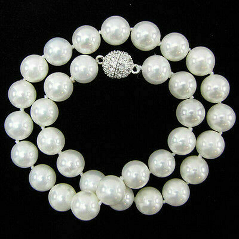 Γυναικείο βραχιόλι με λευκές φυσικές South Sea Shell πέρλες ΑΑΑ 10mm περασμένες σε διπλό μεταξωτό νήμα δεμένες μία-μία.Υπέροχο μαγνητικό κούμπωμα διακοσμημένο με λευκά ζιργκόν σε κοπή round.