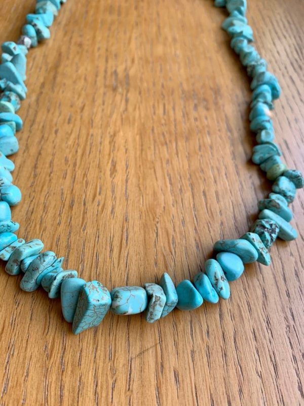 Χειροποίητο μακρύ κολιέ κατασκευασμένο από 100% ορυκτά, φυσικά τυρκουάζ, δεμένα σε διπλό μεταξωτό νήμα. Tο κολιέ έχει μήκος 80 εκατοστά.