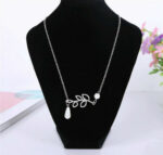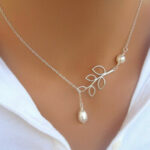 Κολιέ κατασκευασμένο από ατσάλι, που εφαρμόζει ακριβώς στη βάση του λαιμού, διακοσμημένο από δύο άσπρες πέρλες. Το κολιέ έχει μήκος 48 cm + 5 cm το αλυσιδάκι προέκτασης στο πίσω μέρος