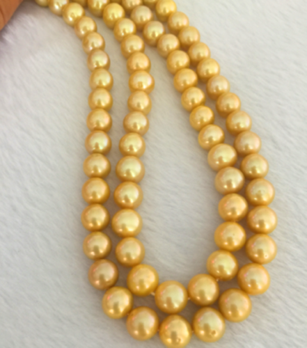 Kολιέ με φυσικές πέρλες στο χρώμα του χρυσού, South Sea Shell μεγέθους 10mm δεμένες μία-μία χωριστά σε διπλό μεταξωτό νήμα, μήκος 47 cm.