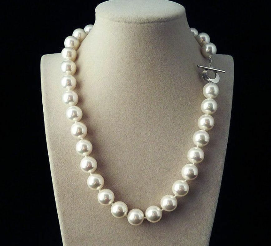 Πέρλες μεγαλύτερες σε χρώμα λευκό, South Sea Shell 10mm quality AAA+.περασμένες μία-μία χωριστά σε διπλό μεταξωτό νήμα. Μήκος κολιέ στα 47 εκατοστά, με κούμπωμα σε σχήμα καρδιάς. Το κολιέ έρχεται σε εσάς μέσα σε πολυτελή συσκευασία!