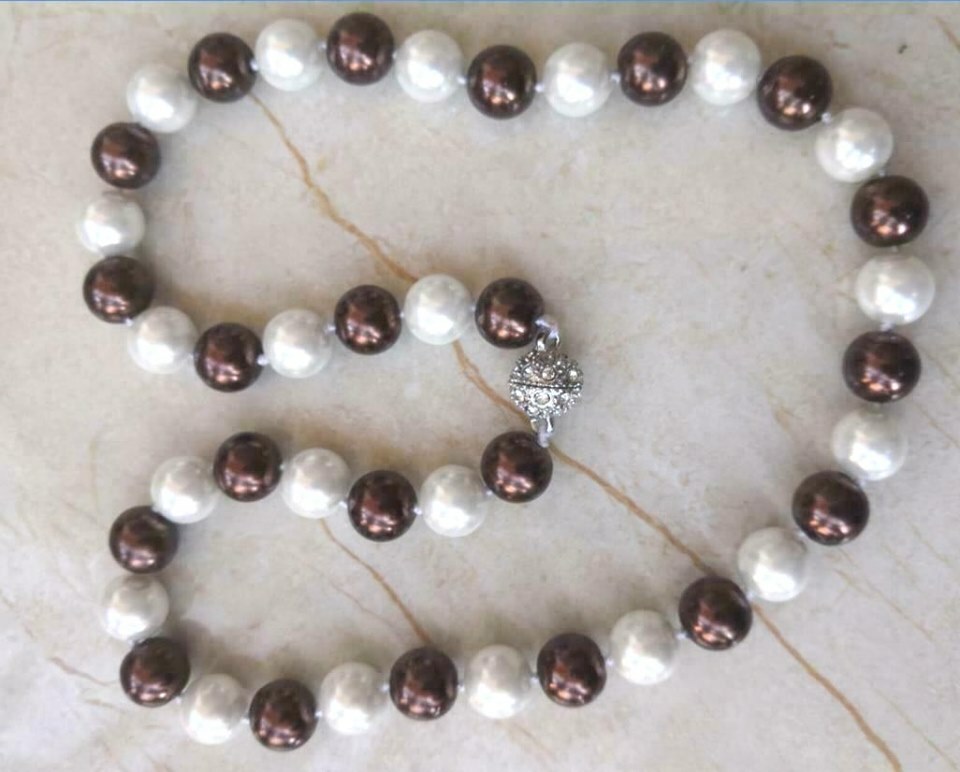 Πέρλες South Sea Shell 10mm ποιότητας ΑΑΑ+, δεμένες σε διπλό μεταξωτό νήμα,σε πραγματικά καταπληκτικό χρώμα white and chocolate.