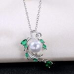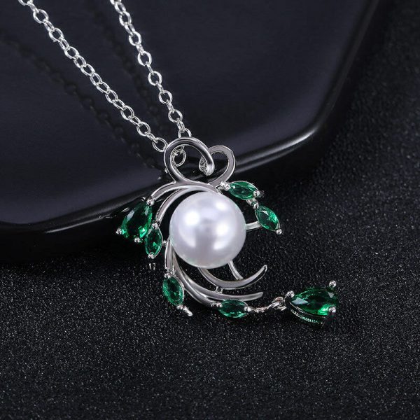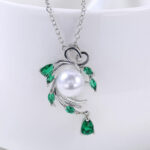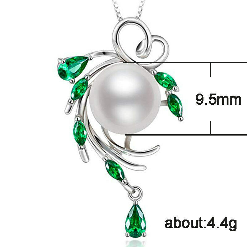 Επάργυρο 925 μενταγιόν, αντίγραφο κοσμήματος γνωστού ιταλικού οίκου. Διακοσμημένο με πέρλα 9,5mm και πράσινα ζιργκόν σε κοπή marquise. Συνοδεύεται από ασημένια αλυσίδα 925, 45 εκατοστών. Το μενταγιόν έχει βάρος 4,4 γραμμάρια.