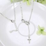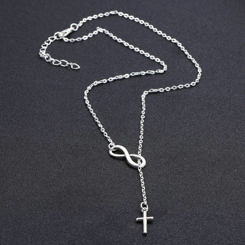 Μενταγιόν με το αιώνιο σύμβολο του σταυρού, και το άπειρο το σύμβολο της αιώνιας αγάπης. Διακριτικό και μοντέρνο! Διαστάσεις σταυρού 4 χ 2,7 εκατοστά, συνοδεύεται από ατσάλινη αλυσίδα 45 εκατοστών συν 7 εκατοστά το αλυσιδάκι προέκτασης στο πίσω μέρος.
