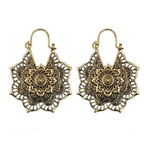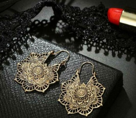 Ρετρό, κρεμαστά σκουλαρίκια για τρυπημένα αυτιά. Κατασκευασμένα από χαλκό και επεξεργασία αντικέ. Διαστάσεις 3,9 εκατοστά X 3,1 εκατοστά.
