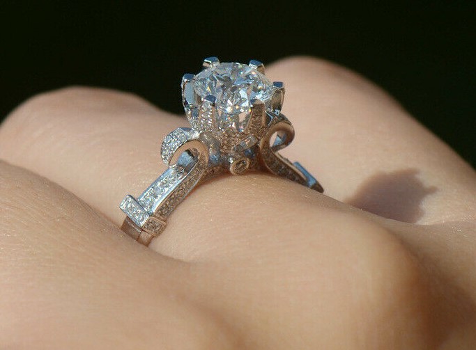 Μονόπετρο γυναικείο δαχτυλίδι, ένα μικρό αριστούργημα! Ασημένιο 925, διακοσμημένο με λευκό ζαφείρι (Lab creation) σε κοπή μπριγιάν 8mm και μικρότερα λευκά ζαφείρια (Lab creation) περιμετρικά της γάμπας σε κοπή round. Βάρος Πετρών :0.60ct –0,49 ct 5,7grams.
