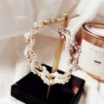 Ρομαντικά και πάντα στη μόδα, σκουλαρίκια κρίκοι διαστάσεων 5.5cm.Kατασκευασμένα από ανοξείδωτο ατσάλι με επιμετάλλωση κίτρινου χρυσού. Διακοσμημένα με λεύκες Faux πέρλες.