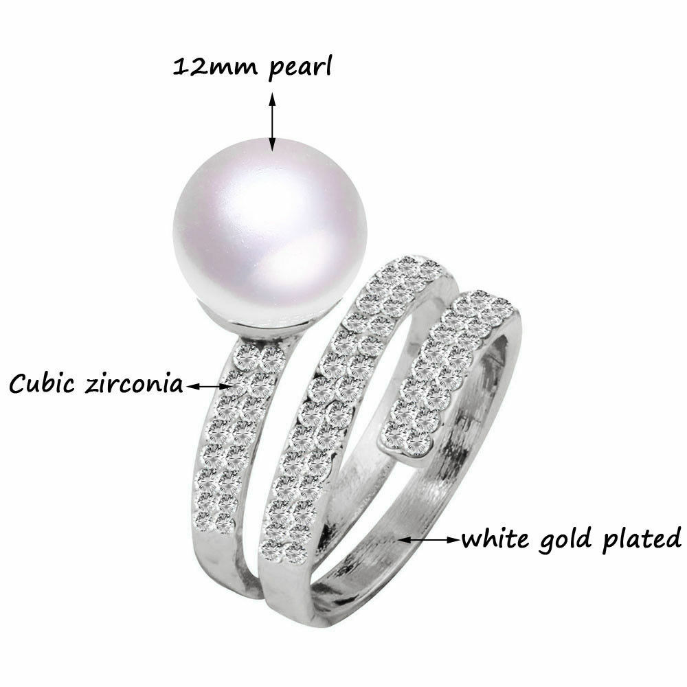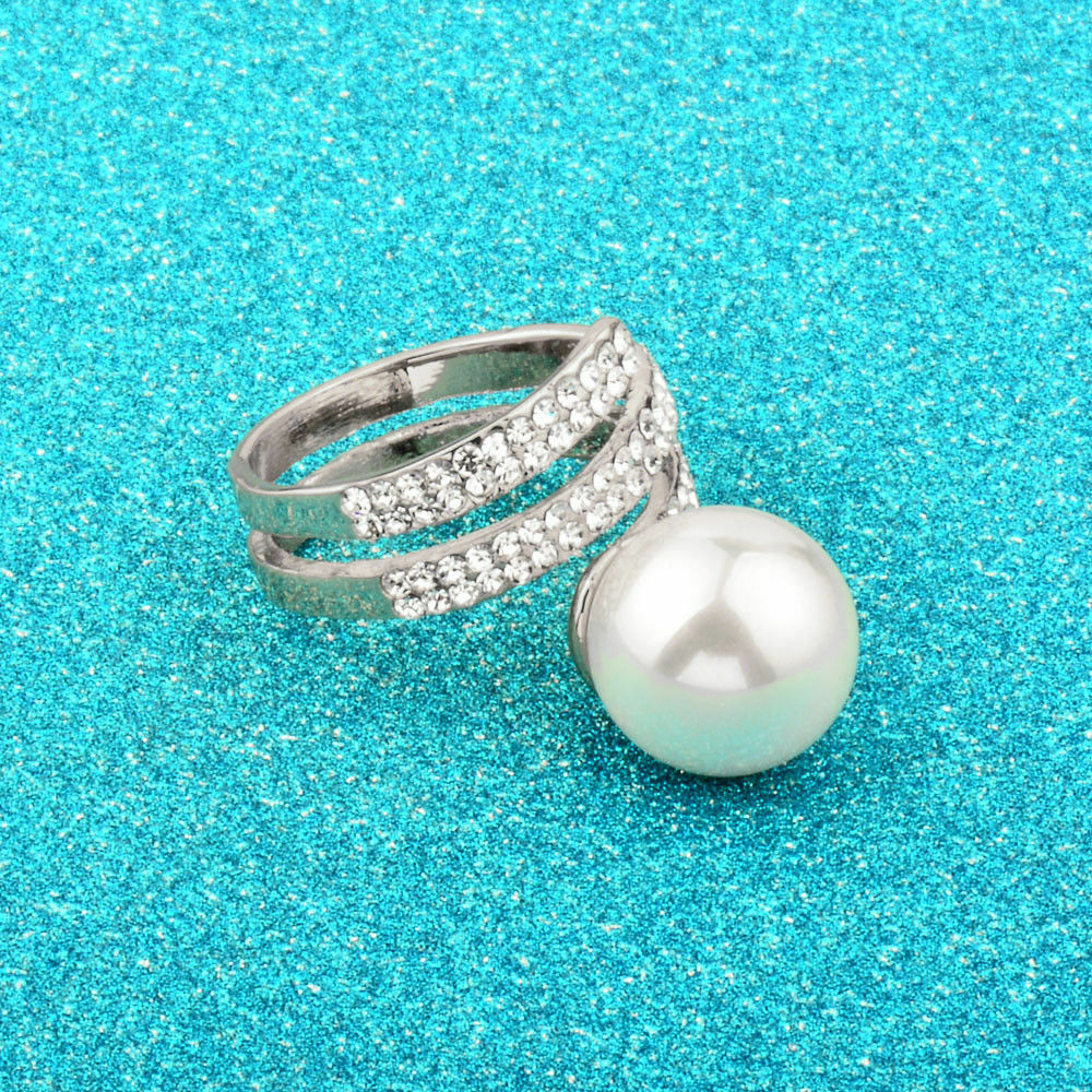 Ένα αριστούργημα το δαχτυλίδι που σας προτείνουμε, θηλυκό και εντυπωσιακό! Κατασκευασμένο από ατσάλι με επιμετάλλωση από λευκόχρυσο, διακοσμημένο με λευκά ζιργκόν σε κοπή round και μία υπέροχη πέρλα Sea Shell λευκή 12mm. Είναι δαχτυλίδι open size.