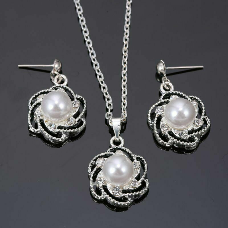 Ένα σετ πολυτελείας, που αποτελείται από μενταγιόν και σκουλαρίκια διακοσμημένα με λευκές πέρλες 8mm round και λευκά ζιργκόν σε κοπή round! Επιμετάλλωση με λευκό χρυσό!