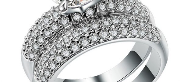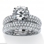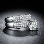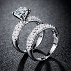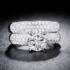 Silver σετ δαχτυλιδιών 925 plated που αποτελείται από βέρα διακοσμημένη με λευκά ζαφείρια (lab-created) σε κοπή round και μονόπετρο δαχτυλίδι διακοσμημένο με λευκό ζαφείρι 8mm (lab-created) σε κοπή round brilliant.