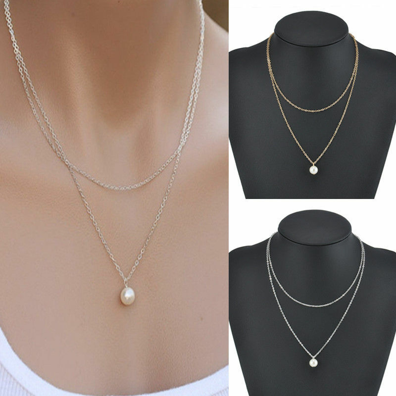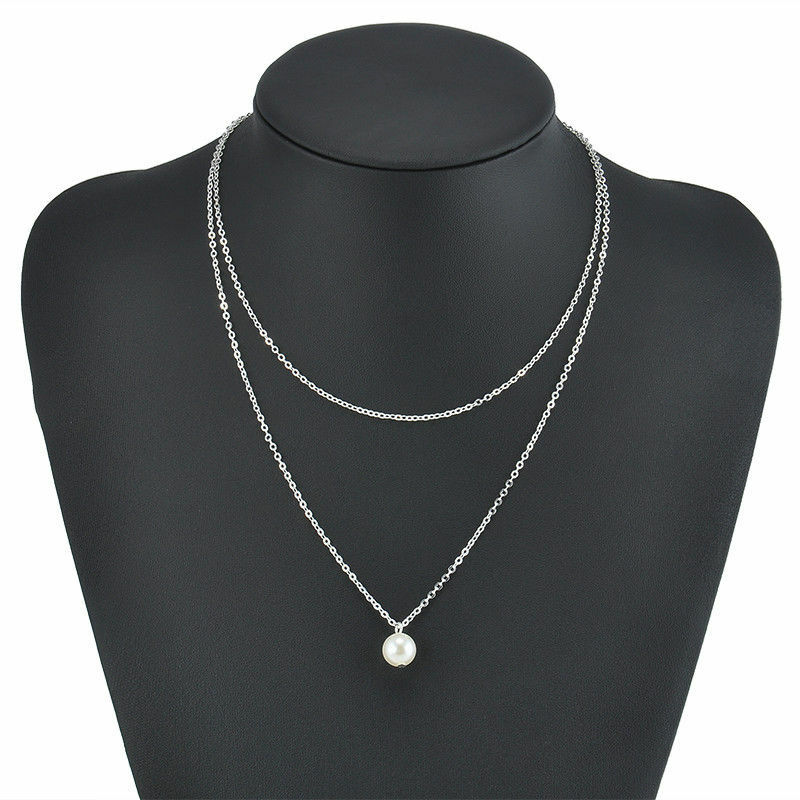 Silver διπλό κολιέ με αποκορύφωμα του μία λευκή πέρλα, που