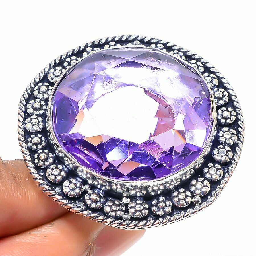 Xειροποίητο ινδικό δαχτυλίδι κατασκευασμένο από ασήμι 925 και διακοσμημένο με ένα 100% φυσικό ορυκτό, πολύτιμο, αμέθυστο (Amethyst) σε κοπή round. Το δαχτυλίδι διατίθεται σε νούμερο 8.5 ή 58. Total Carat Weight (TCW): 75ct.