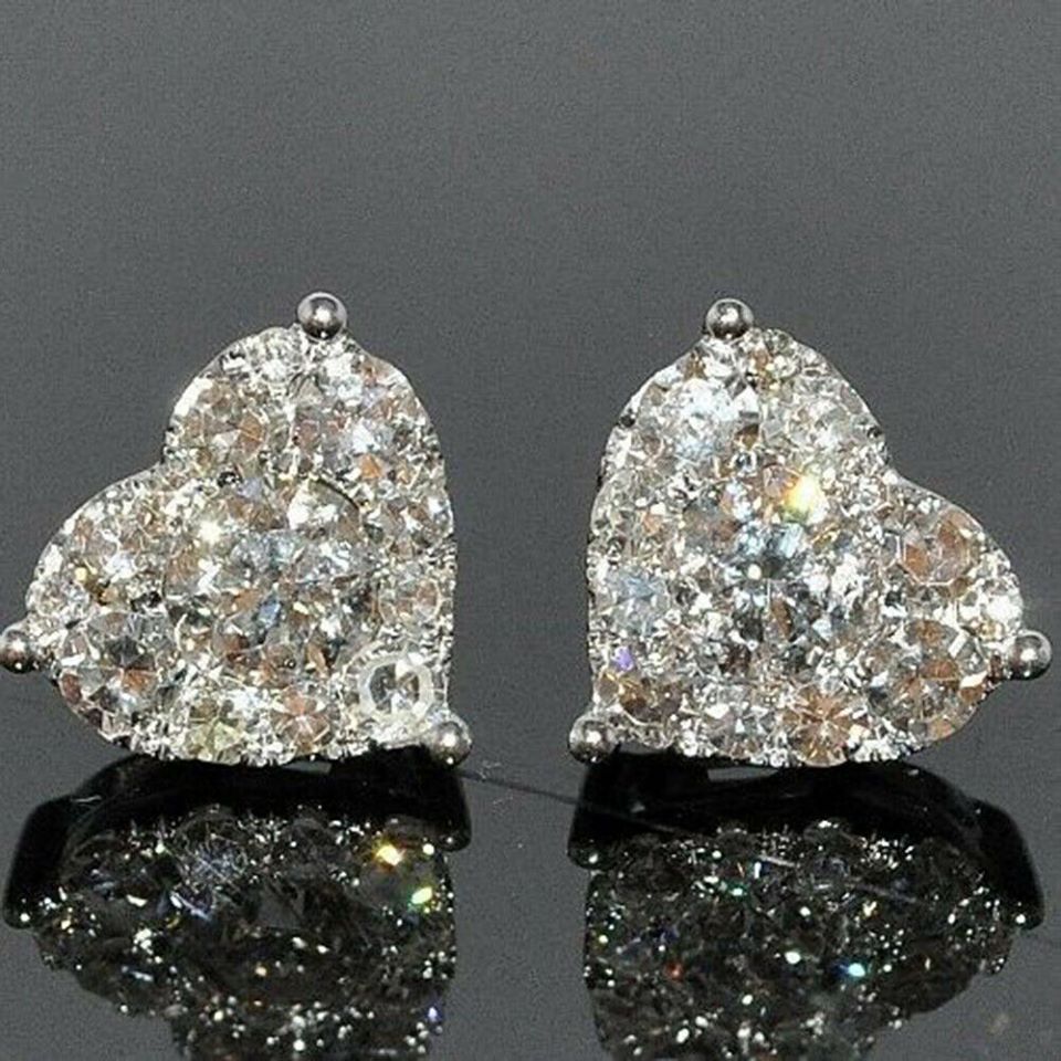 Σκουλαρίκια σε σχήμα καρδιάς για τρυπημένα αυτιά. Κατασκευασμένα από ασήμι 925 και διακοσμημένα με λευκά ζαφείρια (Lab creation) σε κοπή round! Διαστάσεις σκουλαρικιών 1cm X 1cm.