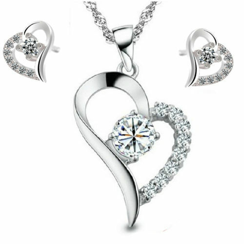Ασημένιο 925, σετ που αποτελείται από μενταγιόν σε σχήμα καρδιάς, διακοσμημένο με ένα μικρό ζαφείρι στο κέντρο και λευκά ζαφείρια περιμετρικά. Συνοδεύεται από την ασημένια αλυσίδα του! Σκουλαρίκια επίσης ασημένια 925 διακοσμημένα με ζαφείρια!!