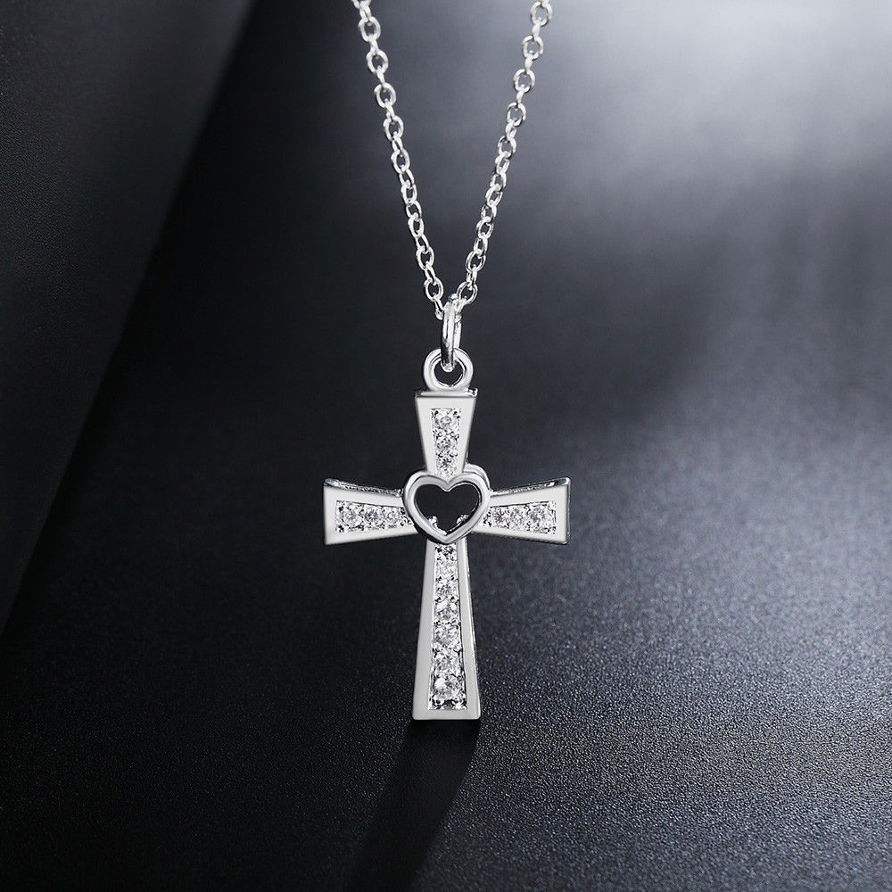 Ένας υπέροχος διαφορετικός σταυρός!!! Κατασκευασμένος από ασήμι και διακοσμημένος με λευκά ζιργκόν σε κοπή round και μία καρδιά στο κέντρο του.