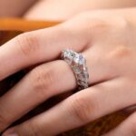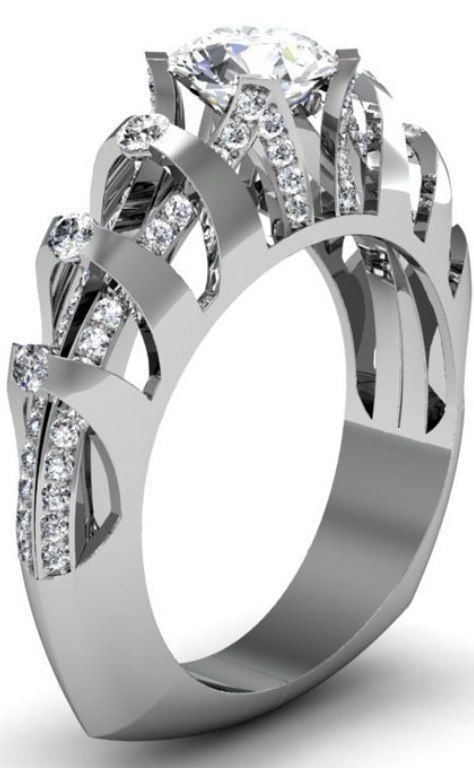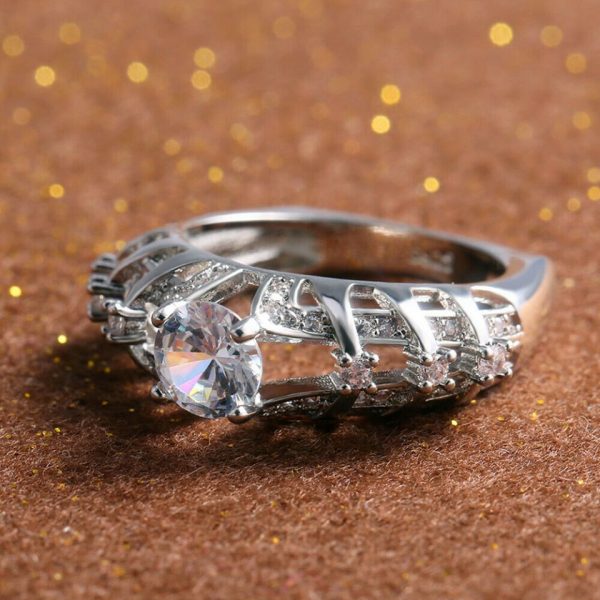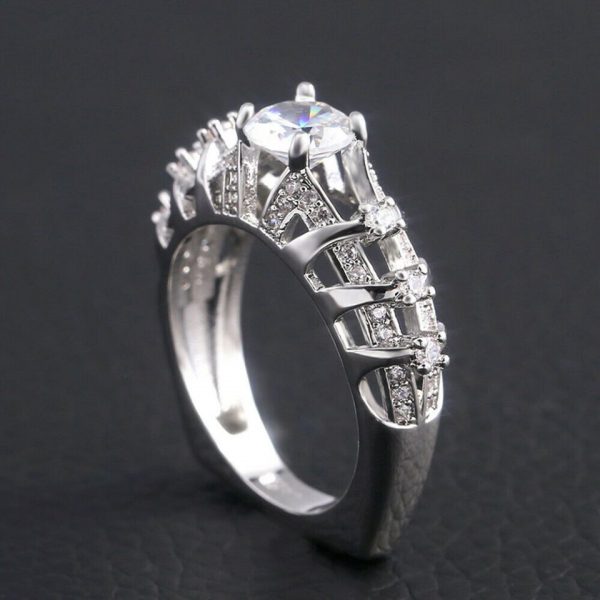 Μονόπετρο γυναικείο δαχτυλίδι, ένα μικρό αριστούργημα! Επάργυρο 925, διακοσμημένο με λευκό ζαφείρι (Lab creation) σε κοπή μπριγιάν και μικρότερα λευκά ζαφείρια (Lab creation) περιμετρικά της γάμπας σε κοπή round. Βάρος Πετρών :0.44ct –0,47 ct 5,4grams