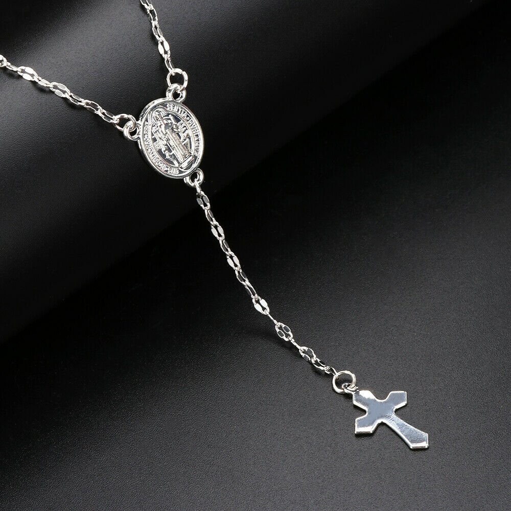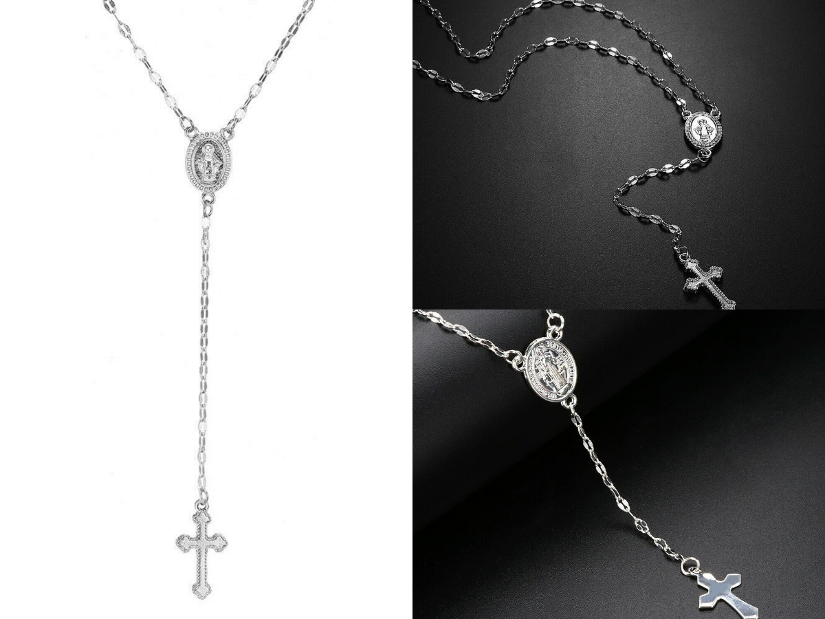 Επάργυρο γυναικείο μενταγιόν σε στυλ ροζάριο μήκους 45 cm +5 cm το αλυσιδάκι προέκτασης στο πίσω μέρος. Βάρους 4,5 γραμμάρια.