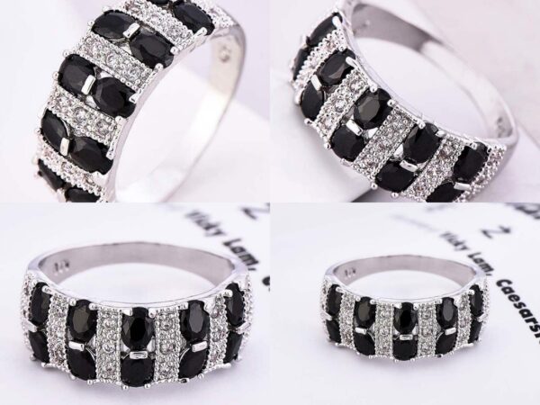 Επάργυρο δαχτυλίδι 925, διακοσμημένο με λευκά και μαύρα