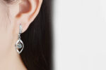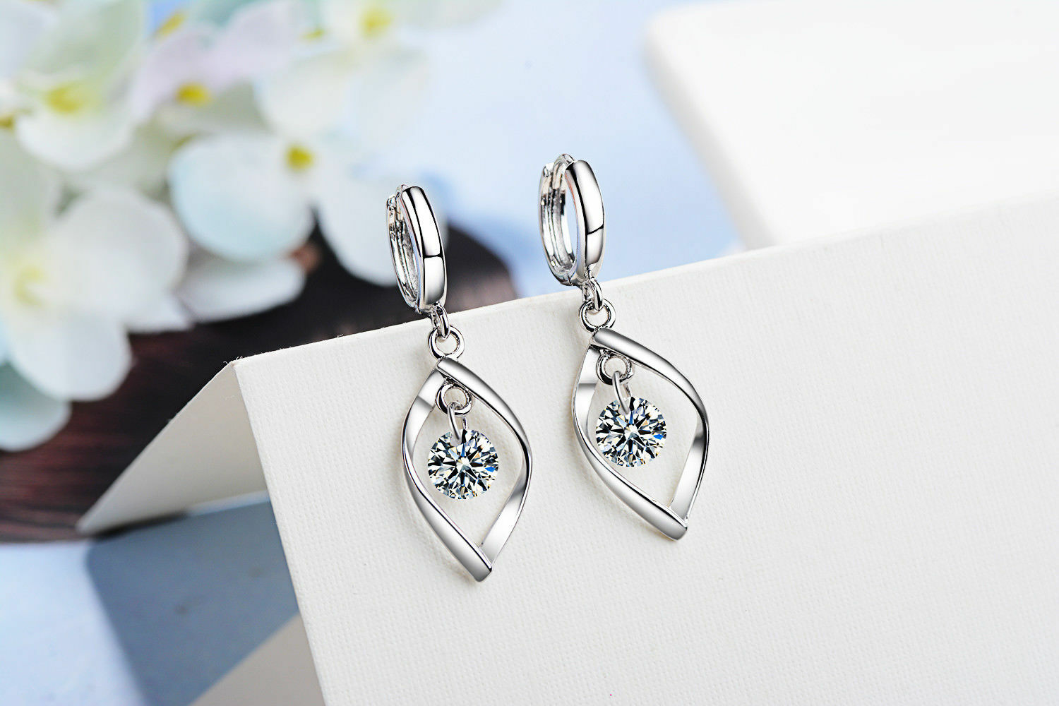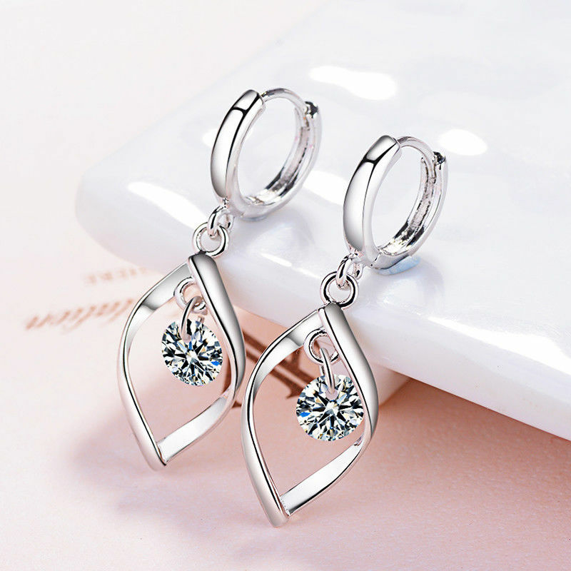 Μονόπετρα κρεμαστά σκουλαρίκια ασημένια 925 και διακοσμημένα από ένα ζιργκόν σε κοπή round brilliant το οποίο κινείται.