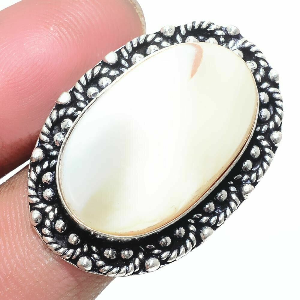 χειροποίητο, ινδικό δαχτυλίδι, κατασκευασμένο από μασίφ ασήμι 925 και διακοσμημένα με μία καταπληκτικής ομορφιάς μαμά πέρλα , 4 X 2,6 εκατοστά σε κοπή oval.