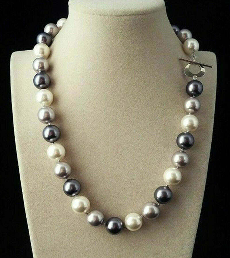 σε χρώμα μαύρο, γκρι και σατινέ λευκό. Μήκος κολιέ στα 45 εκατοστά