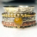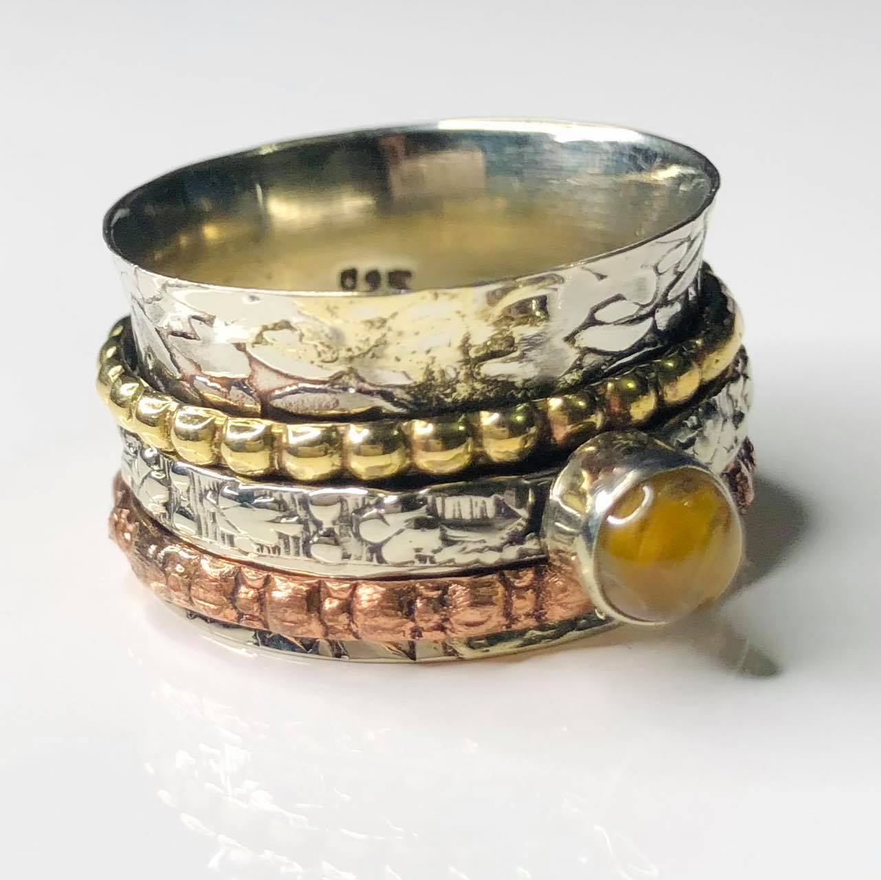 Δαχτυλίδι Spinner Rings, χειροποίητο, κατασκευασμένο από ασήμι 925, διακοσμημένο με φυσικό, ορυκτό, ημιπολύτιμο λίθο μάτι της τίγρης. (Προσφέρει υγεία, θάρρος και δύναμη για μια πιο ενεργητική αντιμετώπιση της ζωής). Mε επιμετάλλωση στα δυο χρώματα του χρυσού ροζ και λευκού.