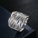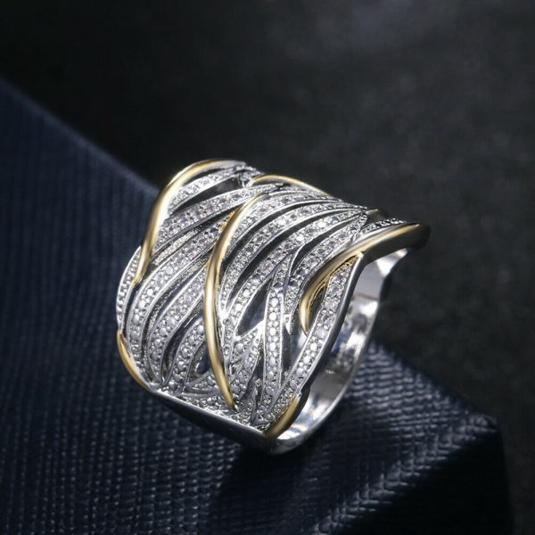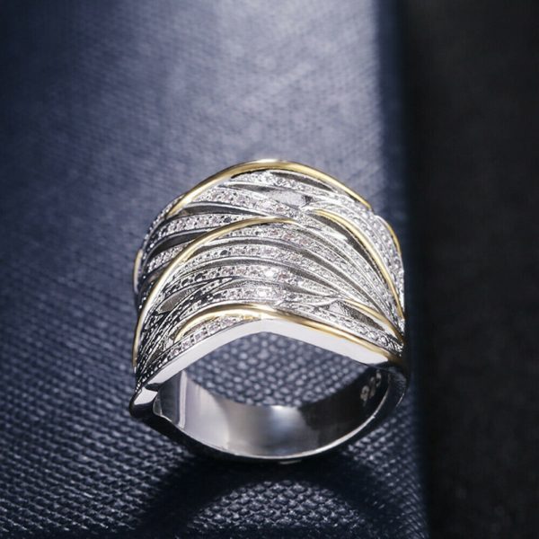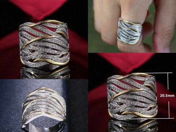 Ένα πολύ όμορφο δαχτυλίδι με εντυπωσιακό όγκο και design που θα καταφέρει να μαγνητίσει τα βλέμματα γύρω σας κάθε φορά που θα το φοράτε. Κατασκευασμένο από ανοξείδωτο ατσάλι και επιμετάλλωση λευκού χρυσού έτσι ώστε να μένει αμετάβλητο στο χρόνο. Διακοσμημένο με ρίγα κίτρινου χρυσού 18k.