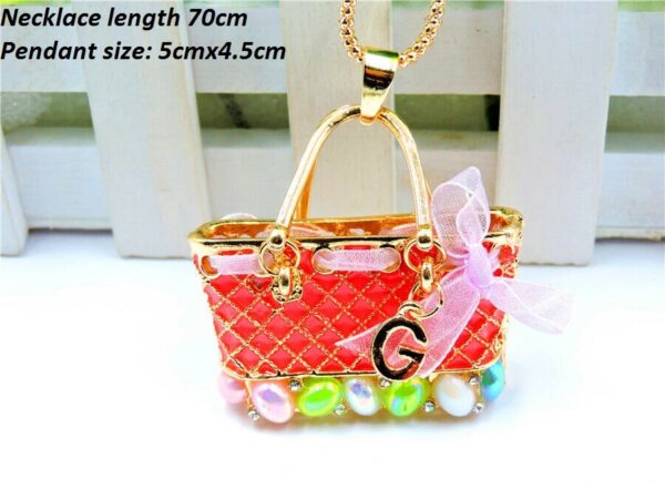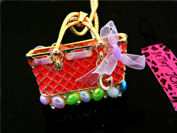 Το απόλυτο καλοκαιρινό μενταγιόν με μοτίφ μία καλοκαιρινή γυναικεία τσάντα στις αποχρώσεις του χρυσού και του κόκκινου, διακοσμημένη με λευκά ζιργκόν και οπαλινες, συνοδεύεται από επίχρυση αλυσίδα στα 70cm. Σχεδιασμένη από την betsey Johnson!