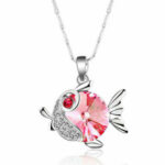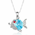 Κρεμάστε στο λαιμό σας το τυχερό ψαράκι, διακοσμημένο με κρύσταλλα σε διάφορα χρώματα, κοντή αλυσίδα ως τη βάση του λαιμού