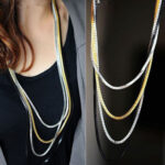 Το must του φετινού χειμώνα που θα φορεθεί πολύ! Μακρύ κολιέ που αποτελείται από τέσσερις αλυσίδες σε 4 διαφορετικά χρώματα Silver, gold, black και Silver dark. (Όχι ενωμένες μεταξύ τους). Μήκος 78cm,84cm,90cm,94cm. Κατασκευασμένο από German silver.