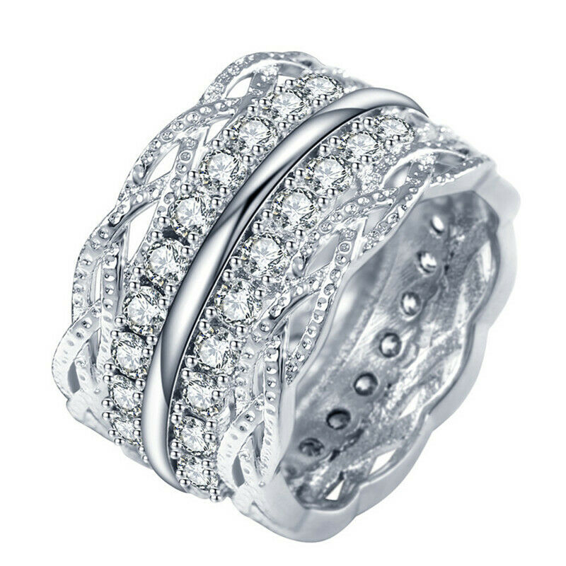 Το φετινό must του καλοκαιριού το δαχτυλίδι που θα φορεθεί πολύ. Κατασκευασμένο από ανοξείδωτο ατσάλι με διπλή επιμετάλλωση λευκού χρυσού 18Κ, διακοσμημένο με λευκά ζαφείρια σε κοπή round (Lab-Created).