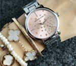 Πανέμορφο αναλογικό ρολόι πολυτελείας Michael Kors silver! Η κάσα του διακοσμείται εσωτερικά με rose gold λεπτομέρειες που προσδίδουν ξεχωριστή ομορφιά και φινέτσα στο ρολόι! Διάσταση καντράν 3,8 εκατοστά! Tο ρολόι εξ ολοκλήρου είναι κατασκευασμένο από ανοξείδωτο ατσάλι.
