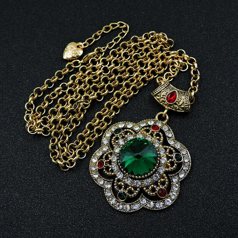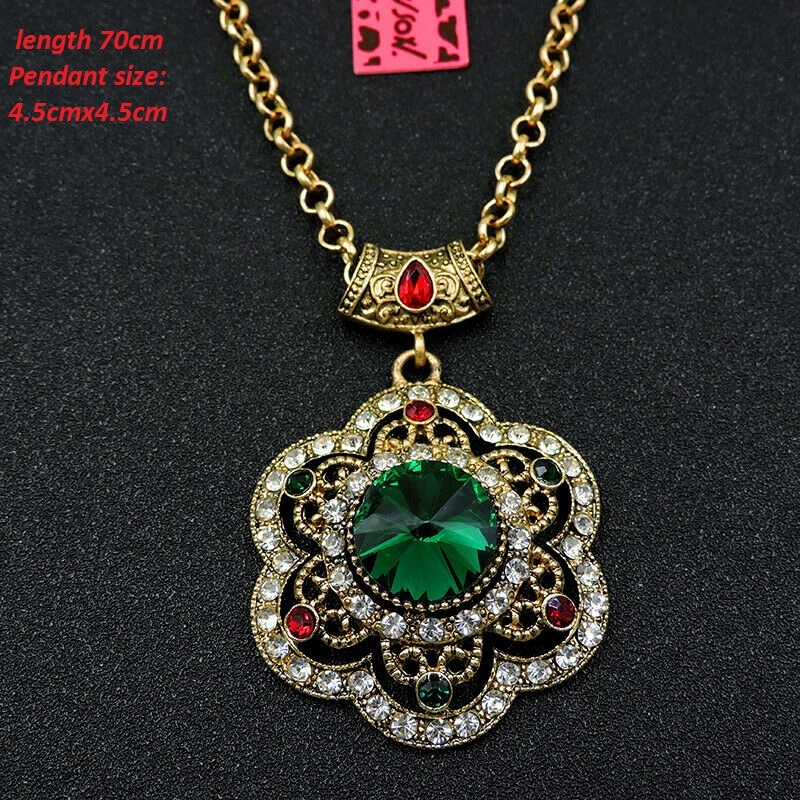 Πολύ ιδιαίτερο κόσμημα, κατασκευασμένο από χαλκό με αντικέ επεξεργασία, μοτίφ 4,5×4,5cm, το οποίο συνοδεύεται από την ανάλογη αλυσίδα 70 εκατοστών. Φορέστε το χειροποίητο κολιέ με το χρώμα του βαθύ πράσινο κρύσταλλο σε κοπή round και χαρίστε αέρα κομψότητας στην εμφάνισή σας.