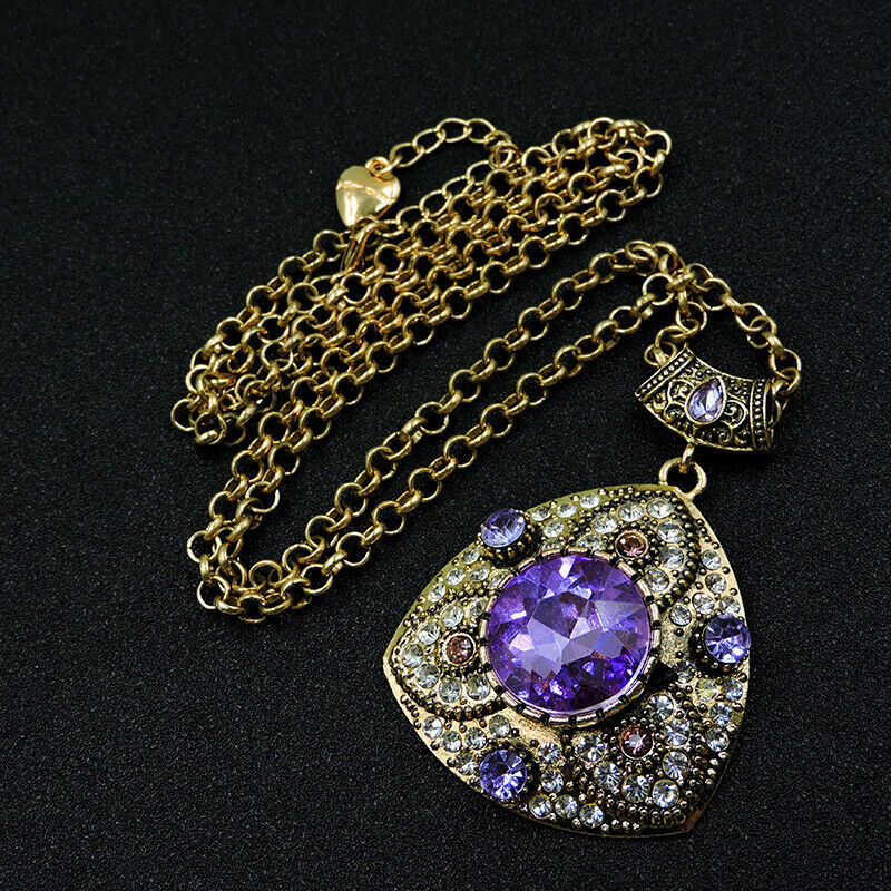 Πολύ ιδιαίτερο κόσμημα, κατασκευασμένο από χαλκό με αντικέ επεξεργασία, μοτίφ 4,5×4,5cm, το οποίο συνοδεύεται από την ανάλογη αλυσίδα 70 εκατοστών. Φορέστε το χειροποίητο κολιέ με μωβ-λιλά κεντρικό κρύσταλλο σε κοπή round και ανεβάστε το επίπεδο της εμφάνισής σας.