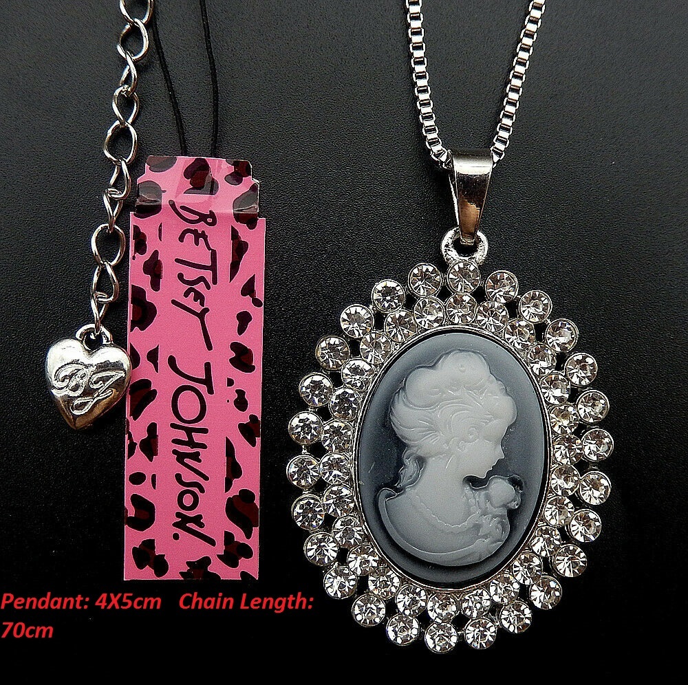 Κλασικό, διαχρονικό και αριστοκρατικό κολιέ καμέο, Vintage αισθητική, φιλοτεχνημένο από τη γνωστή σχεδιάστρια κοσμημάτων ΒetseyJohnson. Συνοδεύεται από επίχρυση αλυσίδα 70 εκατοστών.
