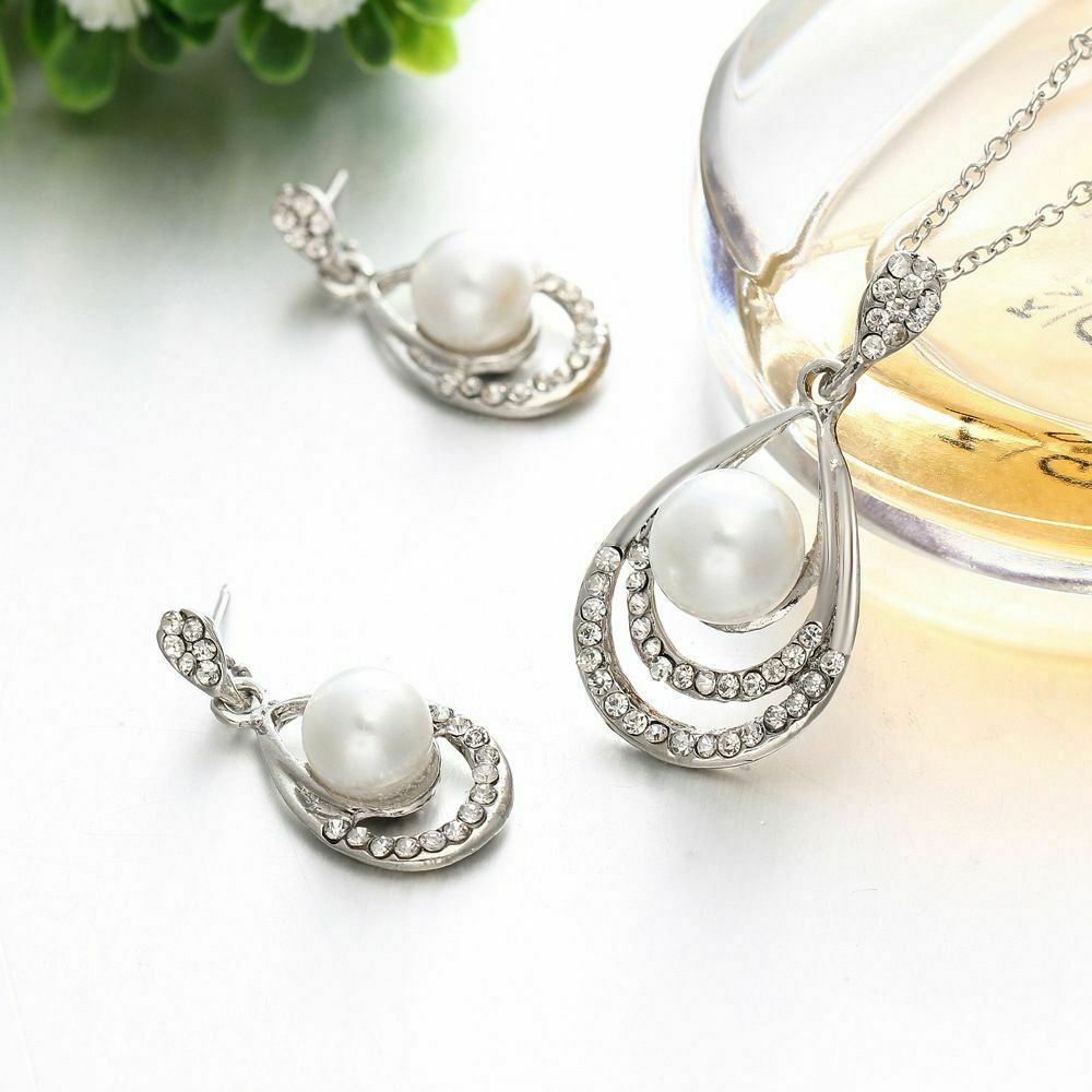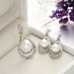 Γυναικείο σετ που αποτελείται από μενταγιόν και σκουλαρίκια, κατασκευασμένο από Nickel Silver και διακοσμημένο με λευκά ζιργκόν και λευκές πέρλες!