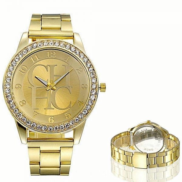 Γυναικείο ρολόι πολυτελείας σε gold απόχρωση στο μπρασελέ και στο καντράν. Η στεφάνη του είναι διακοσμημένη περιμετρικά με λευκά ζιργκόν σε κοπή round! Διάμετρος καντράν 4,4 εκατοστά.