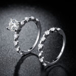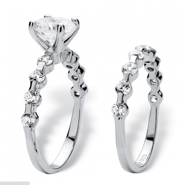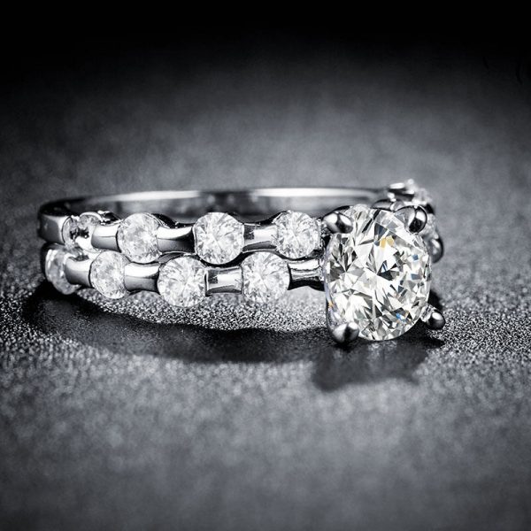 Επάργυρο 925 σετ δαχτυλιδιών που αποτελείται από βέρα διακοσμημένη με λευκά ζαφείρια (lab-created) σε κοπή round και μονόπετρο δαχτυλίδι διακοσμημένο με λευκό ζαφείρι 8mm (lab-created) σε κοπή round brilliant.