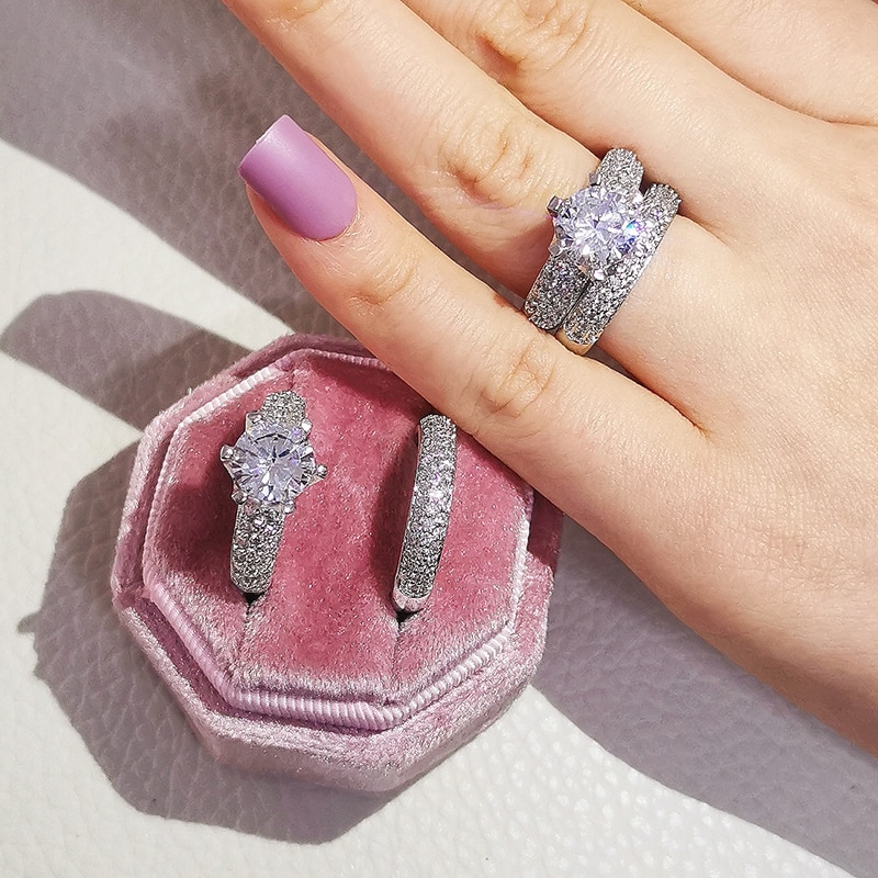 Σετ δαχτυλιδιών με επιμετάλλωση λευκού χρυσού για να μη χάνει τη λάμψη του, αποτελείται από μία βέρα διπλή σειρέ και ένα μονόπετρο διακοσμημένο με ζαφείρια σε κοπή round με το κορυφαίο ζαφείρι σε κοπή μπριγιάν!