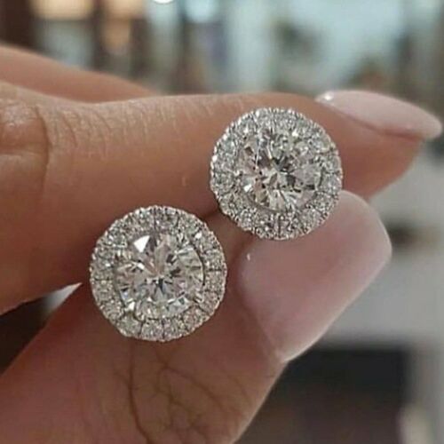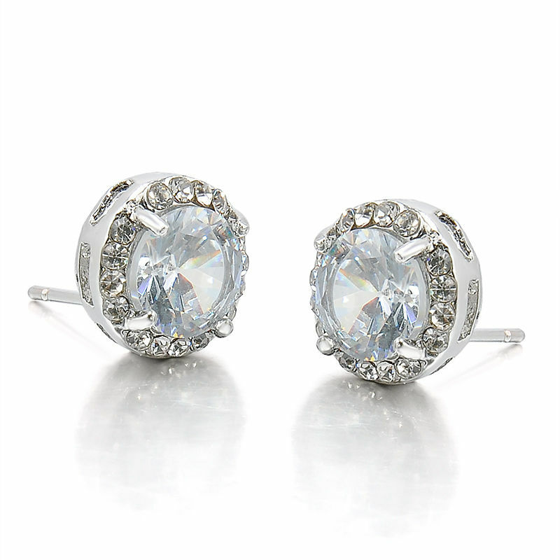 Yπέροχα μονόπετρα σκουλαρίκια κατασκευασμένα από german Silver, διακοσμημένα με λευκά, λαμπερά ζαφείρια (Lab creation) με το κορυφαίο ζαφείρι (Lab creation) σε κοπή roundbrilliant!!
