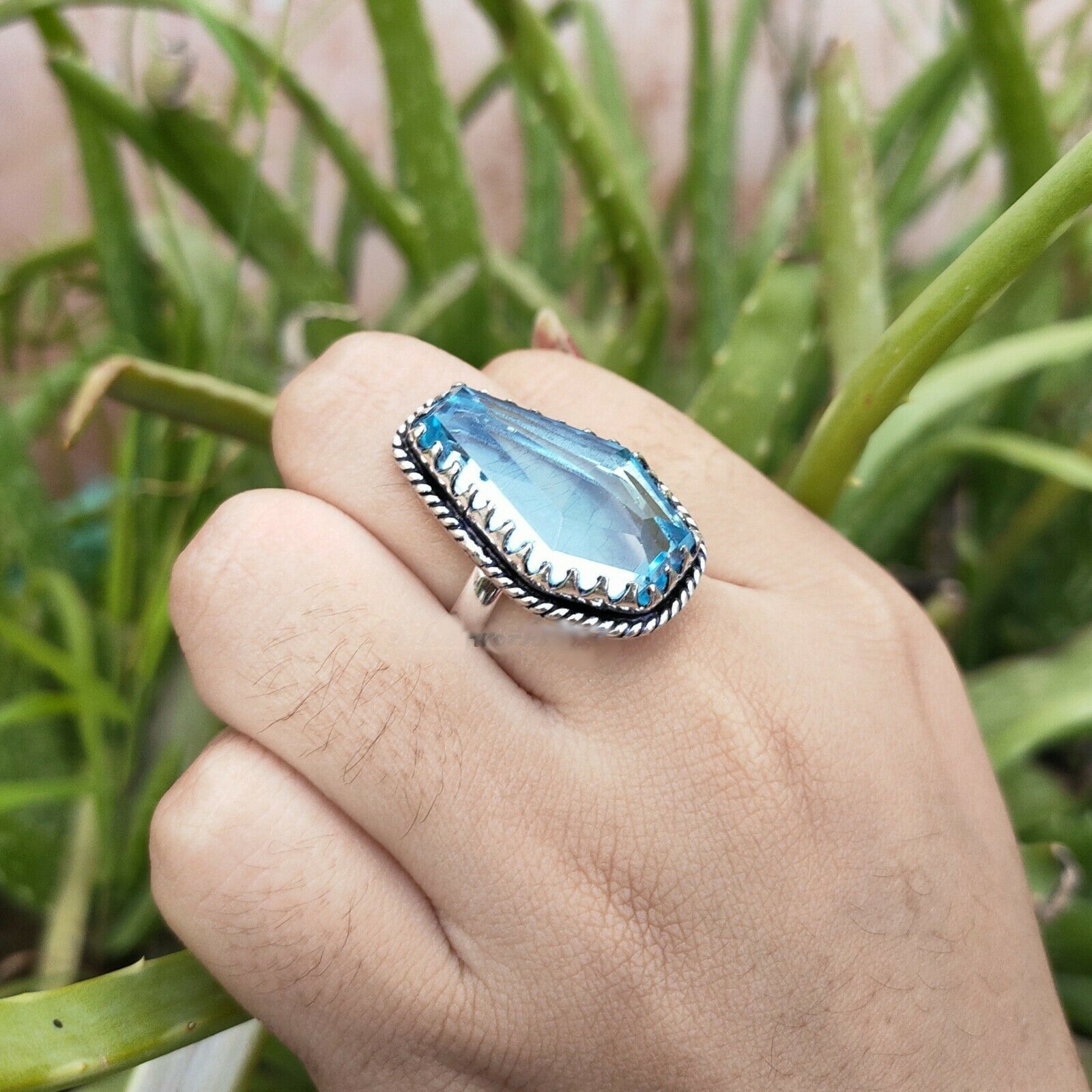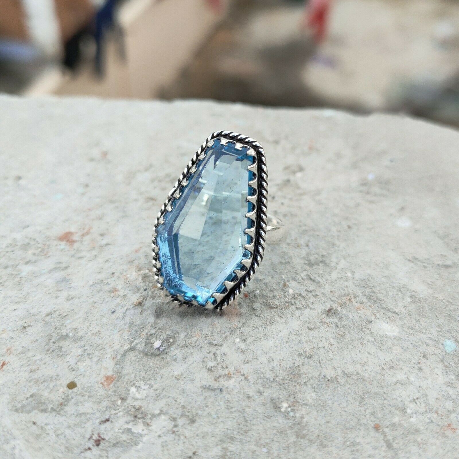 Xειροποίητο ινδικό δαχτυλίδι κατασκευασμένο από ασήμι 925 και διακοσμημένο με πέτρα μπλε τοπάζ (Blue Topaz) (lab creation) σε ιδιαίτερη κοπή.