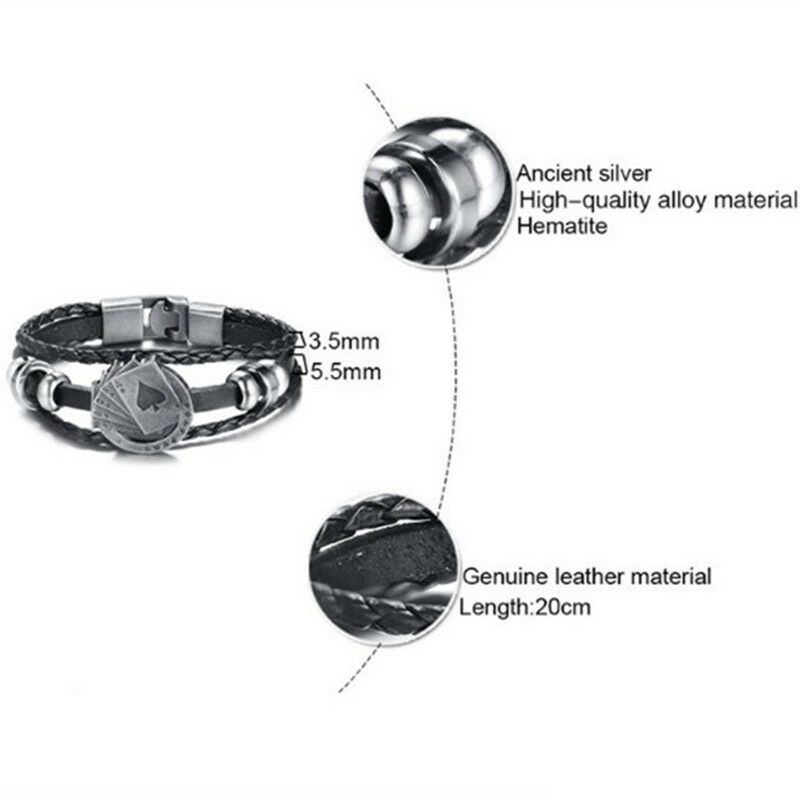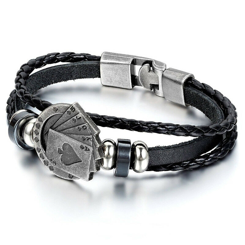 Για τις ιδιαίτερες σας εμφανίσεις ένα ανδρικό βραχιόλι τύχης, για τους λάτρεις της τράπουλας και όχι μόνο, κατασκευασμένο από δέρμα αγελάδας και ανοξείδωτο ατσάλι.